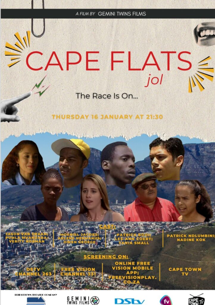 Gemini twins film- comedy CAPE FLATS JOL on television and streaming this Friday 16 January 2026 at 9 30pm? More information below. The story :They are people without colour that enjoy the race of life. We thank you in advance. Local is lekker!